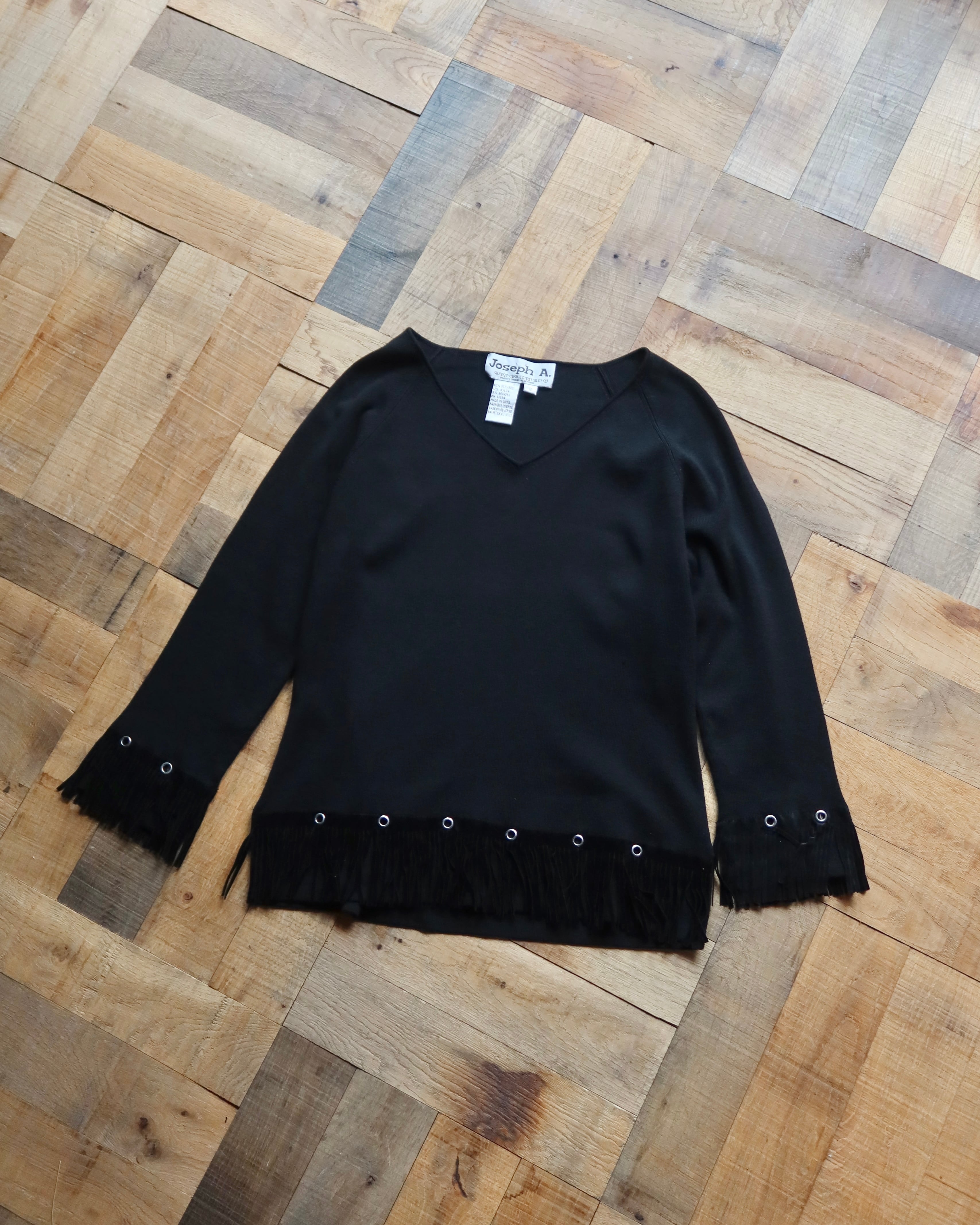 90-00’s Joseph A. fringe hem v-neck silk top